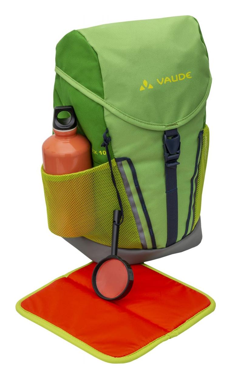 Batôžtek Vaude Puck 10 s nepremokavým dnom, vyrobený z recyklovaného materiálu s impregnáciou bez PFC, je vybavený všetkým, čo váš malý bádateľ môže pri objavovaní svojho okolia potrebovať. Je ideálny ako na cesty do škôlky, tak na prvé výlety či turistické výpravy do prírody. Pohodlne sa nosí vďaka vystuženému chrbtu a nastaviteľnému hrudnému popruhu. Priestranná komora, dve sieťované vrecká a priehradka vo veku pojmú všetky nevyhnutnosti. Čo sa nevojde dovnútra, možno zavesiť na vonkajšie pútka. Pláštenka udrží batoh v suchu aj v intenzívnom daždi, praktický sedák sa bude deťom hodiť na chvíle odpočinku a vďaka lupe bude objavovanie ešte väčšia zábava.
