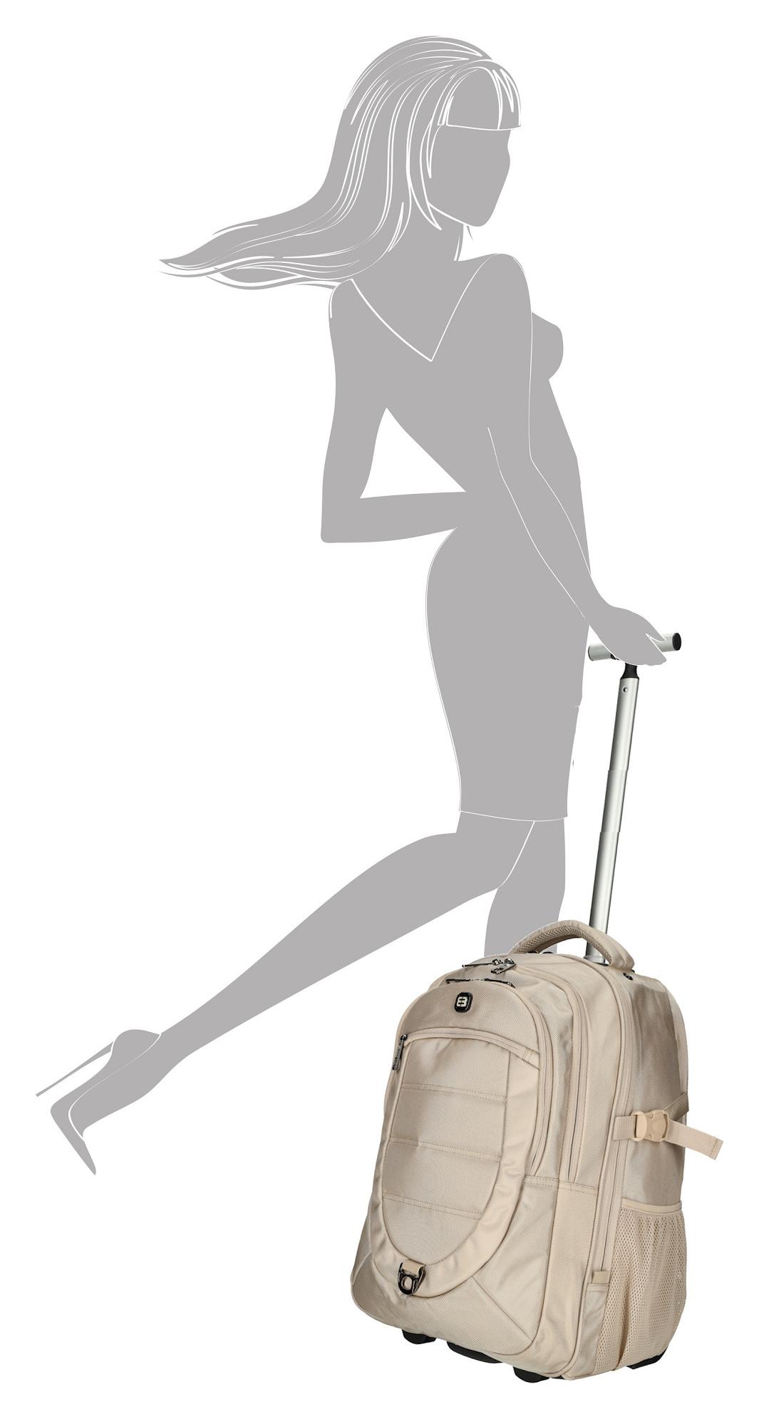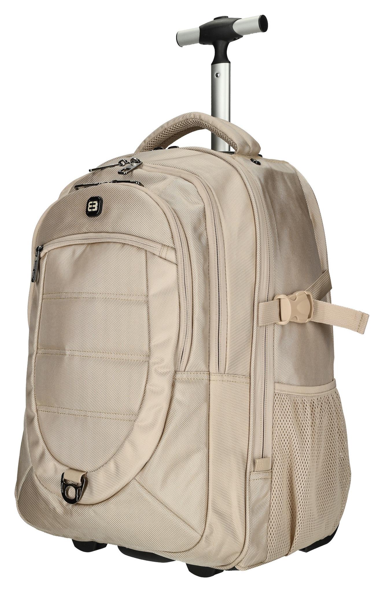 Jeho premyslený dizajn osloví každého, kto hľadá praktickosť spojenú so štýlom. Vyrobený z odolnej kombinácie nylonu a polyesteru, tento batoh na kolieskach je pripravený čeliť nástrahám častého používania. Hlavná komora, uzatvárateľná zipsom, ponúka veľkorysý úložný priestor. Na prehľadné uloženie vašich nevyhnutností slúži aj niekoľko externých vreciek na zips a praktické bočné vrecká. Váš notebook bude v bezpečí v špeciálnej polstrovanej priehradke. Vďaka teleskopickej rukoväti a dvom pevným kolieskam sa batoh ľahko premení na praktický vozík, ktorý uľaví vášmu chrbtu. Ak potrebujete mať voľné ruky, pohodlné, polstrované ramenné popruhy a polstrovaný chrbtový panel zaistia komfortné nosenie.