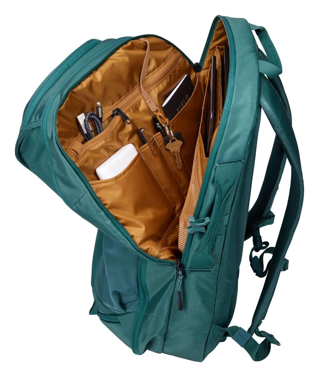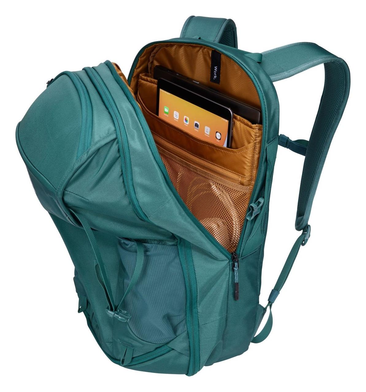 Predstavte si batoh, ktorý obstojí pri cestovaní, v škole, v kancelárii i pri náročných túrach a pojme všetko, čo budete potrebovať. Viacúčelový športový batoh Thule EnRoute s objemom 30 litrov tieto predstavy splní bez zvyšku. vyvýšené čalúnené vrecko na 15,6" notebook vyvýšená čalúnená priehradka na 10" tablet organizačný panel na drobnosti ako perá a kľúče samostatná priehradka na dokumenty alebo elektroniku oddelené vrecko prístupné zvonku, v ktorom môžete uschovať napríklad špinavé oblečenie bezpečnostné vrecko SafeZone na telefón, slnečné okuliare a iné cennosti vodeodolné vrecko na TPU zips na uloženie oblečenia alebo iných osobných vecí batoh je možné rozopnúť po celej jeho dĺžke, podobne ako kufor, pre ľahké uloženie vecí priehradka so sieťovaným panelom na zips na objemné predmety vonkajšie bočné vrecká zo sieťoviny na uloženie fľaše s pitím, dáždnika, pláštenky či elektroniky priechodný zadný panel na pripevnenie k cestovnému kufru na kolieskach príjemne čalúnené ramenné popruhy hrudný popruh na pohodlné nosenie čalúnený chrbtový panel s odvetrávacím kanálikom na lepšiu cirkuláciu vzduchu popruhy na vyváženie záťaže materiál z nylonu 400D s certifikáciou bluesign® so zipsmi YKK