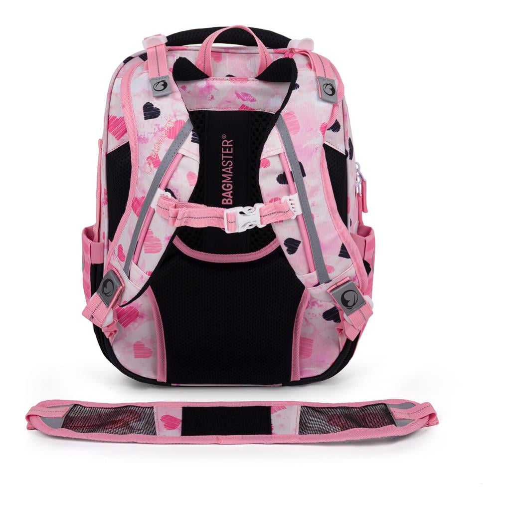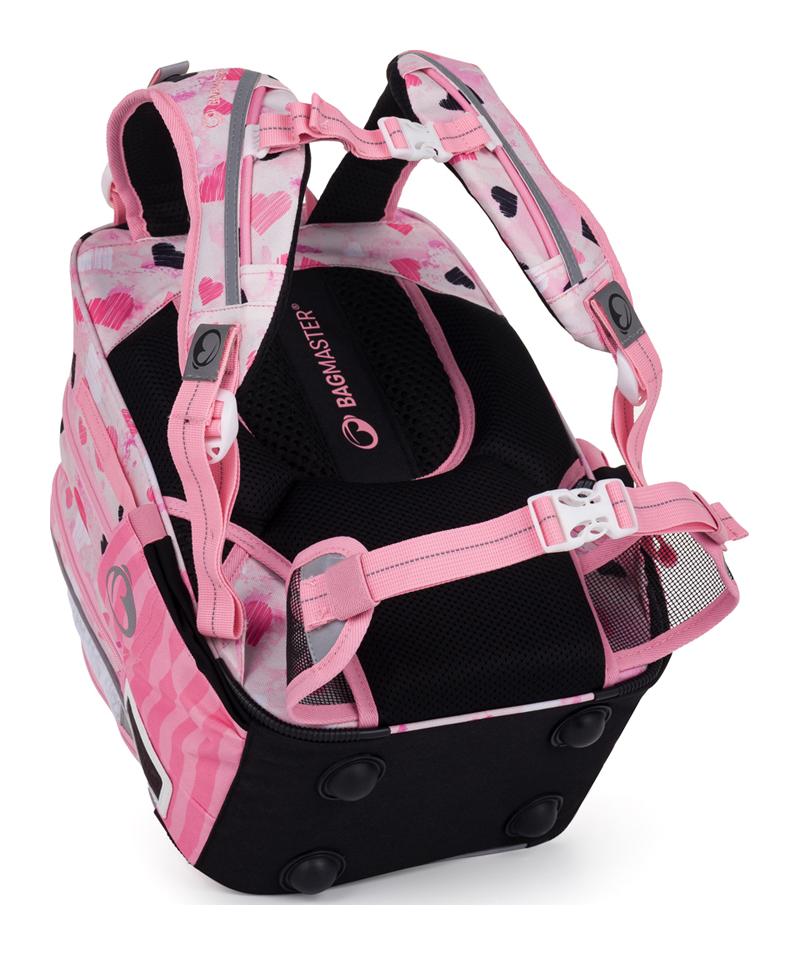 <p>Priestorný dievčenský školský batoh Bagmaster Beta 24 vyniká predovšetkým svojou ľahkou konštrukciou, ktorá je na podporu správneho držania tela doplnená čalúneným ergonomickým chrbtovým panelom, priedušným bedrovým popruhom a výškovo nastaviteľným hrudným popruhom. Tri komory pojmú všetky potrebné školské pomôcky a prehľadne ich usporiadajú. Zadná komora je naviac vybavená špeciálnym oddielom na knihy a učebnice, ktorý pomáha udržať ťažisko batoha čo najbližšie chrbtu, odľahčí chrbtici a prispieva k lepšiemu držaniu tela. Deti sa tak pri chôdzi nehrbia. Vo výbave nechýba ani vrecko na peračník, organizér na cennosti, reflexné prvky na lepšiu viditeľnosť pri pohybe po ceste za zníženej viditeľnosti a plastové nožičky zaisťujúce samostatné státie.</p>