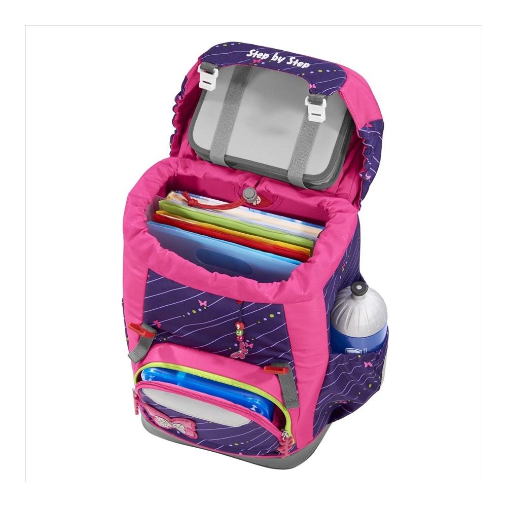 Školský batoh Step by Step Grade je navrhnutý s ohľadom na potreby malých školákov. Ergonomický chrbtový systém s integrovaným otočným mechanizmom Easy grow umožní plynulé výškové nastavenie ramenných popruhov. Batoh teda porastie s vaším dieťaťom. Esíčkovito tvarované ramenné popruhy spoločne s bedrovým a hrudným popruhom rozložia hmotnosť batohu medzi bedrá a ramená tak, aby zabezpečili pohodlné každodenné nosenie. Priestranná komora s intuitívnym zatváraním na pracky pojme učebnice, zošity, peračník aj ďalšie pomôcky. Izolované predné vrecko je ideálne na uloženie desiaty či škatuľky s obedom. Do veľkých bočných vreciek sa zmestí aj väčšia fľaša na pitie. Deti navyše potešia magnetické obrázky, ktoré možno ľubovoľne meniť.