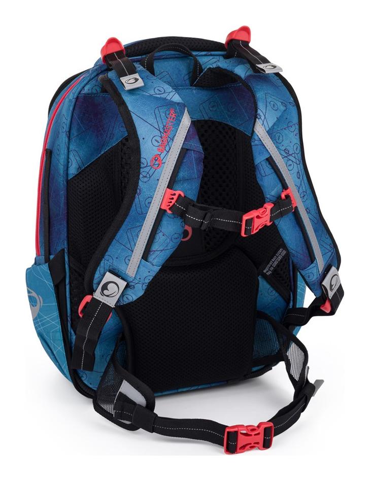 Samotný školský batoh VEGA vyniká svojou ľahkou konštrukciou a premysleným chrbtovým systémom. Ergonomicky tvarovaný chrbát spolu s nastaviteľnými ramennými popruhmi, hrudným popruhom a odnímateľným bedrovým pásom zaisťujú pohodlné nosenie a podporujú správne držanie tela. Dve priestranné komory ľahko pojmú všetky učebnice a zošity, pričom kompresné vrecko udrží ťažšie veci blízko chrbta a pomôže tak pritiahnuť ťažisko batohu, čo najbližšie k telu. Batoh je vyrobený z odolného materiálu, má pevné dno s nožičkami pre lepšiu stabilitu a nechýbajú ani početné reflexné prvky pre maximálnu bezpečnosť dieťaťa na ceste do školy.