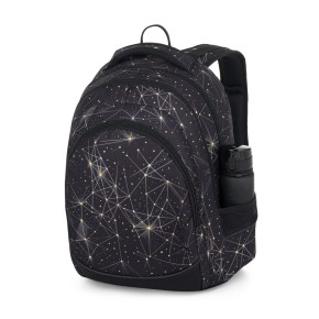 Dizajn s motívom zlatej súhvezdia na čiernom podklade dodá vášmu outfitu jedinečný šmrnc. Batoh je navrhnutý s ohľadom na pohodlie a zdravie chrbta, s polstrovaným chrbtom a nastaviteľnými ramennými popruhmi. Vnútorné usporiadanie s niekoľkými komorami a špeciálnym vreckom zaistí prehľadné uloženie všetkých školských potrieb, vrátane notebooku. Nechýba ani šikovný organizér na drobnosti, mobil či peňaženku a skryté vrecko na cennosti v chrbtovej časti pre väčšie bezpečie. Reflexné prvky zaistia dobrú viditeľnosť za zníženej viditeľnosti. Súčasťou setu je aj praktický peračník, ktorý udrží všetky písacie potreby pekne pohromade a usporiadané. Tento študentský batoh je navrhnutý tak, aby vyhovoval potrebám študentov na druhom stupni základnej školy aj na strednej škole, a to nielen svojim vzhľadom, ale predovšetkým svojou funkčnosťou a odolnosťou.