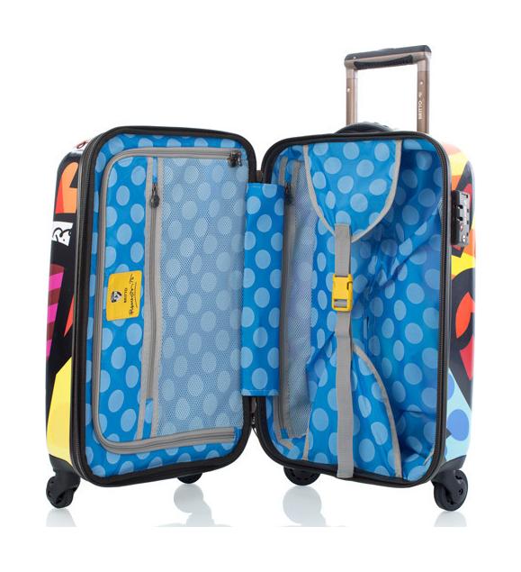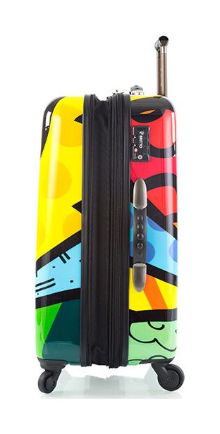 Originálny kufor Heys Britto A New Day z limitovanej kolekcie vás bude nabíjať neskutočným množstvom energie aj pri naozaj náročnom cestovaní. Živé farby a unikátny motív, ktorý navrhol populárny brazílsky umelec Romero Britto, osobitým spôsobom kombinuje prvky pop artu a graffiti tak, aby nadchol nielen svojich majiteľov, ale aj okoloidúcich alebo ostatných cestujúcich. Luxusný interiér a funkčné prvky vás zahrnú komfortom aj v čase, keď budete ďaleko od domova. – hladké Hinomoto kolieska otočné o 360° pre maximálnu stabilitu a ľahký pohyb v rôznom teréne – hliníková teleskopická rukoväť s aretáciou a ergonomickou rúčkou – expander pre zväčšenie objemu kufra o 20 % – integrovaný kombinačný TSA zámok vhodný pre cesty do USA – potlač je chránená vrstvou bezfarebného laku, ktorá kufru dodáva jedinečný lesk – kvalitné zipsy – pevná rúčka pre pohodlnú manipuláciu – vrecko na drobnosti – deliaca priečka so sieťkovaným vreckom – popruh s klipom uľahčujúci balenie – jemná textilná podšívka so vzorom – kufor je väčšinou leteckých spoločností akceptovaný ako palubná batožina – predĺžená päťročná záruka