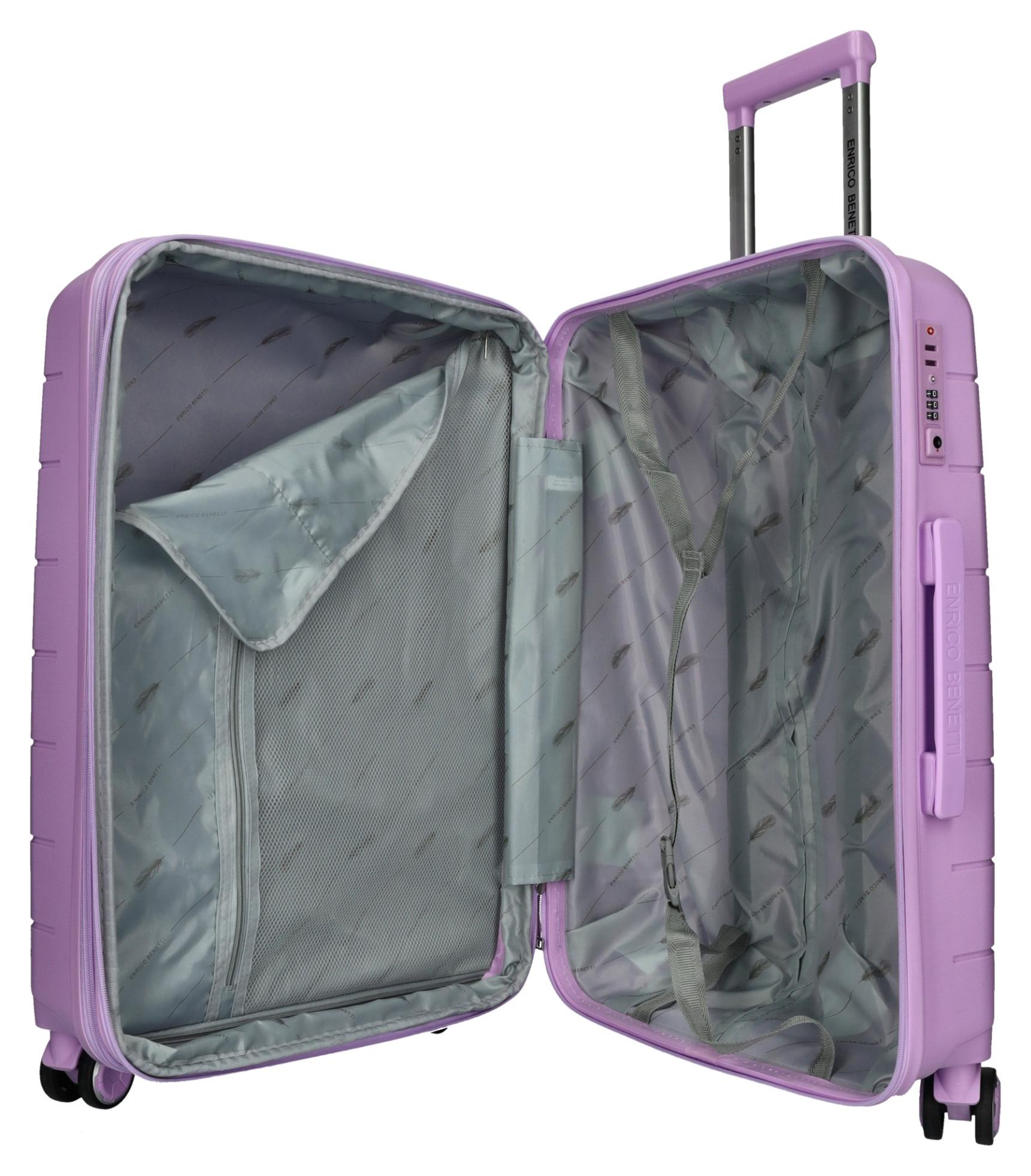 Vykročte v ústrety cestovateľským zážitkom s elegantným kufrom Enrico Benetti Montréal. Kvalitný polypropylén prepožičiava kufru tie najlepšie vlastnosti, ako je odolnosť, nízka hmotnosť a dlhá životnosť. Kufor je vybavený TSA zámkom, ktorý sa stáva pri leteckom cestovaní stále väčším benefitom – ochráni obsah kufra pred zlodejmi, zároveň ale umožní prehliadku batožiny letiskovej kontrole. Stredný kufor M disponuje expandérom, takže už pri balení nebudete musieť robiť kompromisy a z ciest si budete môcť doviezť i nejaký suvenír. Vnútorná prepážka s vreckom a kompresné popruhy umožnia prehľadnú organizáciu a udržia vo vašich veciach poriadok.