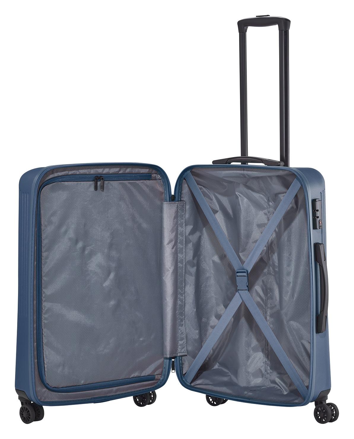 Užite si dovolenku naplno a bez starostí! Nadčasový vzhľad a rýdzo praktická výbava kufra Bali vás optimálne naladí na vlnu letných zážitkov. Jednoducho navrhnutý interiér s látkovou priečkou a popruhmi pomôže rýchlo a prehľadne zbaliť všetko potrebné na dlhšie cesty i kratší pobyt mimo domov. Škrupina z odolného tvrdého plastu s hrubým povrchom a integrovaný TSA zámok ochránia uložené veci počas prepravy. Štyri kolieska uľahčia jazdu v teréne i manipuláciu s plne naloženým kufrom.
