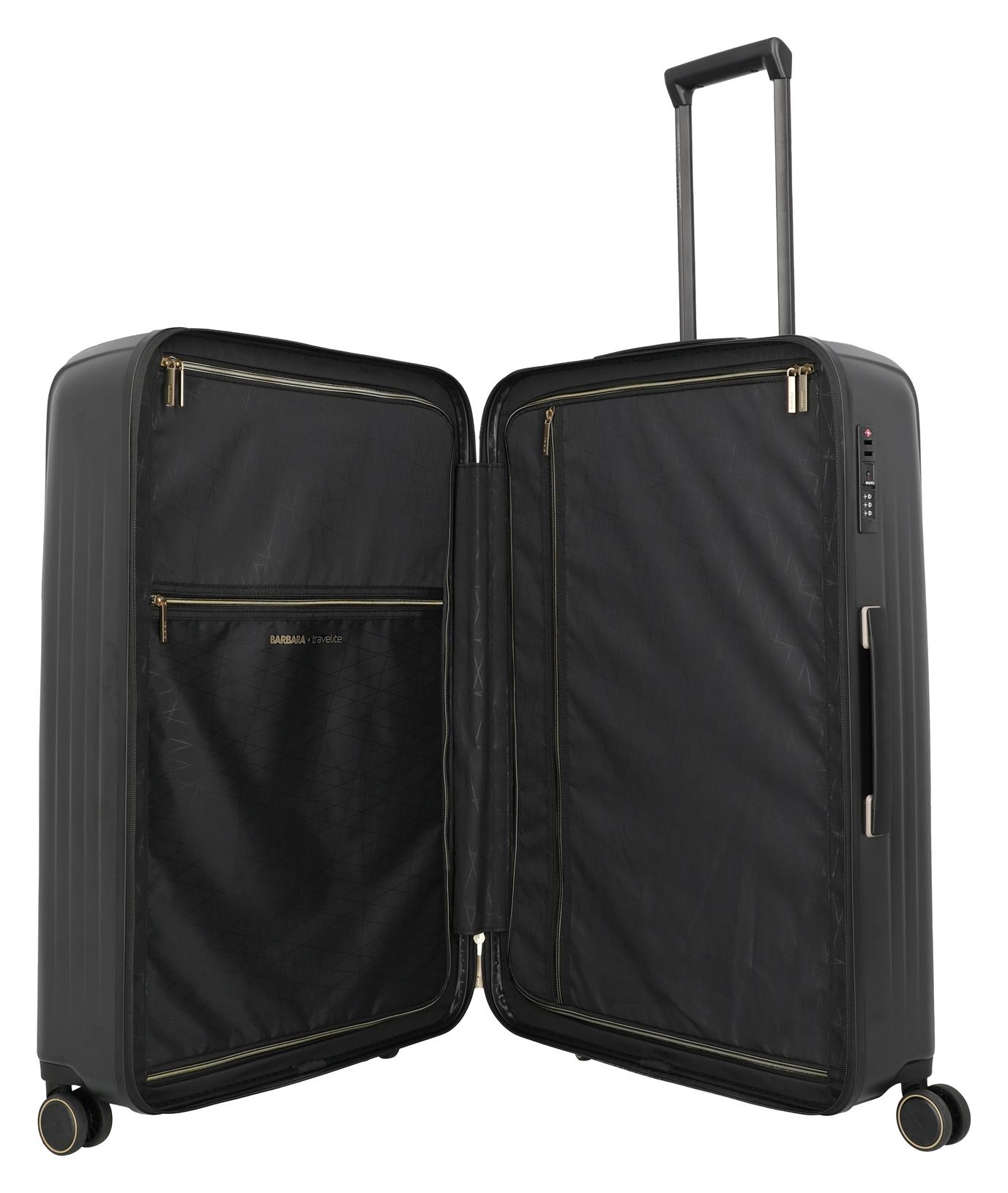 Chystáte sa vyraziť na dlhú cestu a potrebujete si pribaliť pár vecí navyše? Žiadny problém! Travelite BARBARA Novelty L je priestranný a spoľahlivý partner na cesty pre všetky štýlové ženy, ktoré ocenia nekompromisnú odolnosť, nadštandardnú výbavu aj nadčasový módny vzhľad. Elegantný dámsky škrupinový kufor z exkluzívnej kolekcie dámskej batožiny BARBARA & Travelite navrhnutý v spolupráci s nemeckou moderátorkou, herečkou a speváčkou Barbarou Schöneberger vás očarí luxusným dizajnom aj premysleným vnútorným usporiadaním, ktoré si zamilujete.
