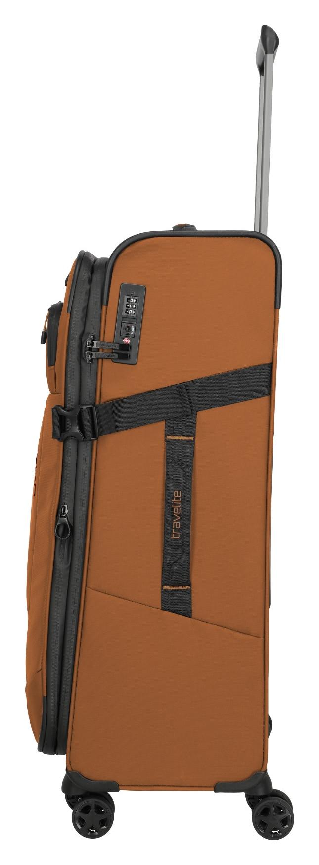 Splňte si svoje cestovateľské sny a užite si cesty po svete štýlovo a bez kompromisov! Textilný kufor Travelite Briize L z ľahkého a extra odolného vodoodpudivého materiálu vybavený nepremokavými zipsami bude vyhovovať vašim požiadavkám na funkčnosť aj pohodlie, takže s ním budete môcť bez obáv vyraziť naozaj kamkoľvek. Kufrík hravo zvládne prepraviť vašu výbavu autom, autobusom, vlakom, loďou či lietadlom, a to aj v daždi. V úložnom priestore nájdete pre lepšiu organizáciu nielen praktickú priehradku na košele, ale aj baliace popruhy a malé vrecko na drobnosti. Cestovné doklady a ďalšie nevyhnutnosti jednoducho uložíte do predného vrecka, kde budú rýchlo a ľahko po ruke. Integrovaný TSA zámok ochráni vaše veci a postará sa aj o hladký priebeh prípadnej kontroly batožiny na letisku. Nenáročnú jazdu zaistia štyri otočné kolieska. Integrovaný expandér umožní navýšiť kapacitu kufra o ďalších 7 litrov.