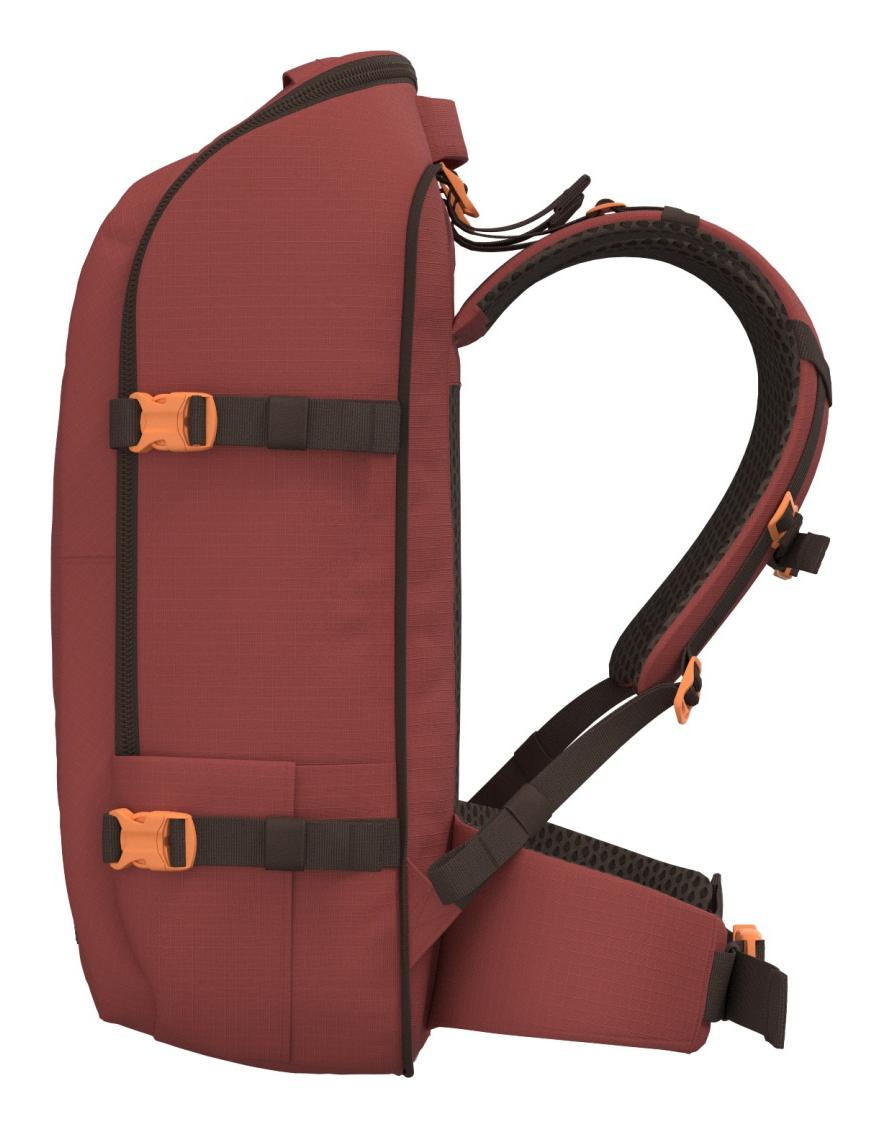 Už nie je treba premeriavať veľkosť vašej príručnej batožiny! Palubný batoh CabinZero Adventure 42L sa do priestoru pre palubnú batožinu pohodlne vojde i vďaka tomu, že možno nastaviteľné ramenné popruhy ľahko uschovať v samostatnej priehradke na zadnom paneli. Okrem toho poteší batoh cestovateľov všetkých vekových kategórií ešte množstvom vonkajších a vnútorných vreciek, čalúneným chrbtom i ľahko prístupným vonkajším bočným vreckom na fľašu. Pri dlhých pochodoch s batohom na chrbte vám bude oporou vnútorný hliníkový rám, ktorý rozloží váhu neseného nákladu a uľahčí vaše kroky v teréne.