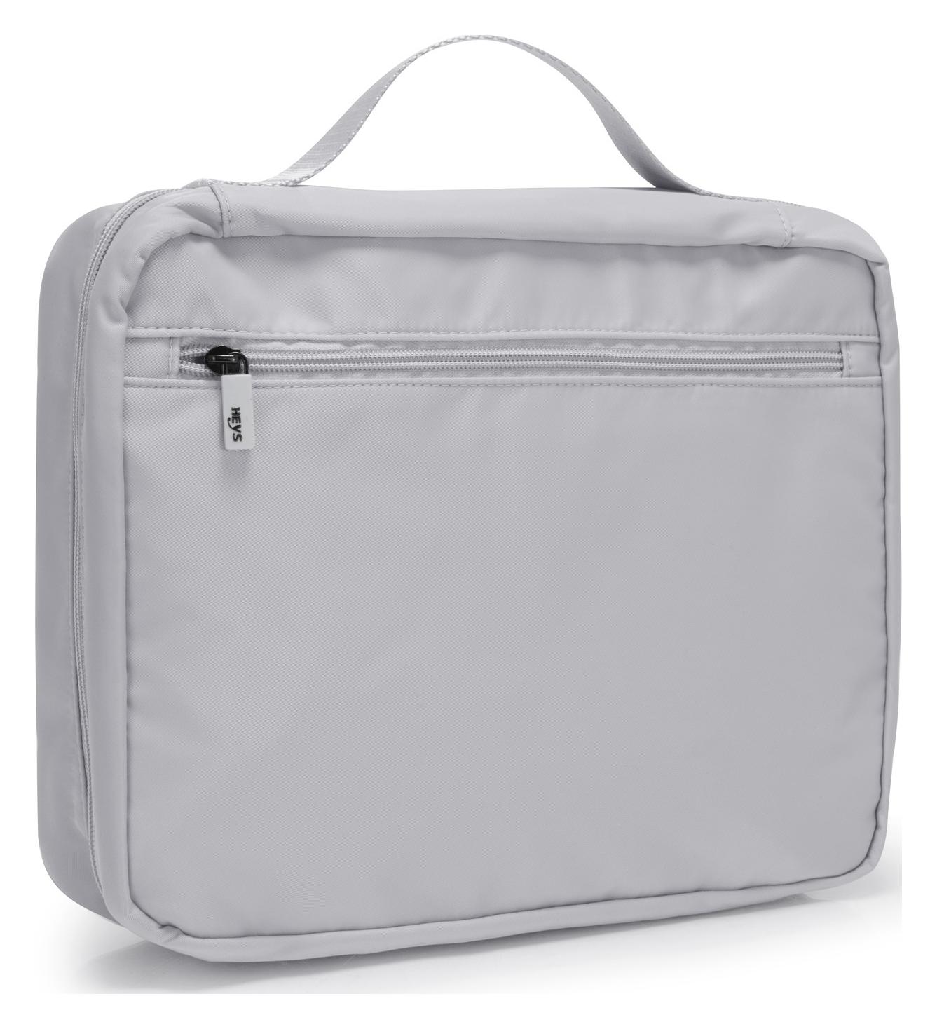 Štýlová toaletná taštička pomôže s uložením a prepravou toaletných potrieb i kozmetickej výbavy. Rozkladací dizajn a dobre umývateľný interiér s tromi veľkými vreckami z priehľadného vodeodolného materiálu umožní mať dokonalý prehľad o všetkých veciach vo vnútri. Vďaka praktickému háčiku je možné tašku pohodlne zavesiť napríklad na dvere alebo držiak v kúpeľni. K dispozícii je tiež odnímateľné transparentné puzdro a veľké vonkajšie vrecko na zips, do ktorého sa vojde špongia i menší cestovný uterák.