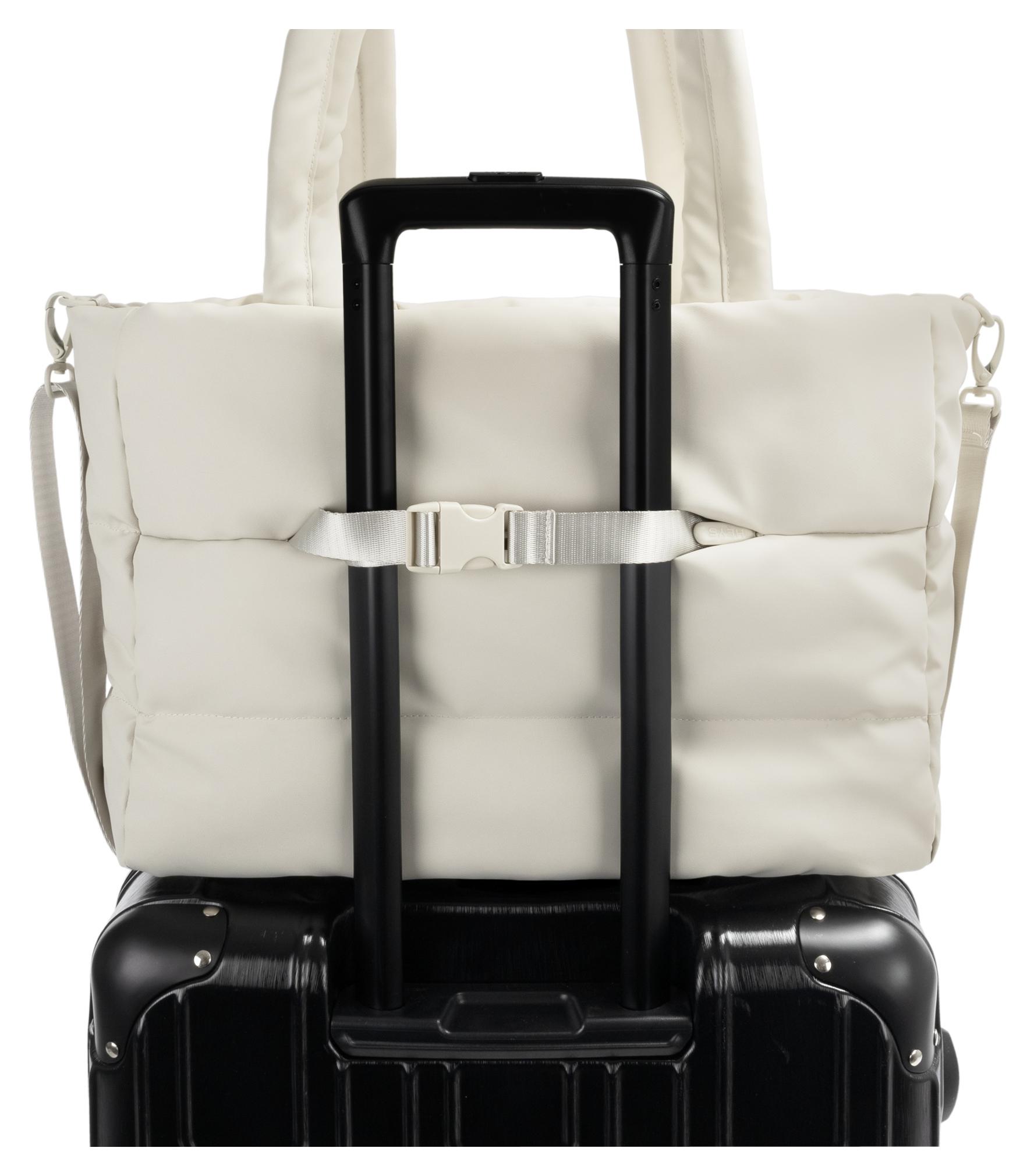 Moderná prešívaná dámska taška Heys The Puffer Tote Bag je vyrobená z luxusne mäkkého, ľahkého a vodeodolného polyesteru s polyuretánovým záterom, ktorý sa veľmi ľahko udržiava. Jednokomorová taška s vreckami je nielen štýlová, ale aj maximálne praktická – hodí sa ako na cestovanie, tak na pohodlné každodenné používanie ako kabelka. Môžete s ňou bez obáv vyraziť nielen do mesta, práce, fitka, ale aj na dovolenku. Premyslený dizajn navyše umožní vziať si tašku do lietadla, uložiť ju pod sedadlo a cestovať s ňou pohodlne a bez poplatkov. Jej rozmery spĺňajú požiadavky na malú príručnú batožinu nízkonákladových leteckých spoločností EuroWings a West Jet. O dokonalú organizáciu všetkých vecí a ich vynikajúcu dostupnosť sa postará polstrovaná priehradka na notebook, organizér, špeciálne vrecko na fľašu a vonkajšie vrecká na zips. K dispozícii je aj integrovaná kľúčenka. Dve uši do ruky, odnímateľný popruh cez rameno a popruh na nasunutie na madlo cestovného kufra zaistia flexibilitu aj komfort pri prenášaní.
