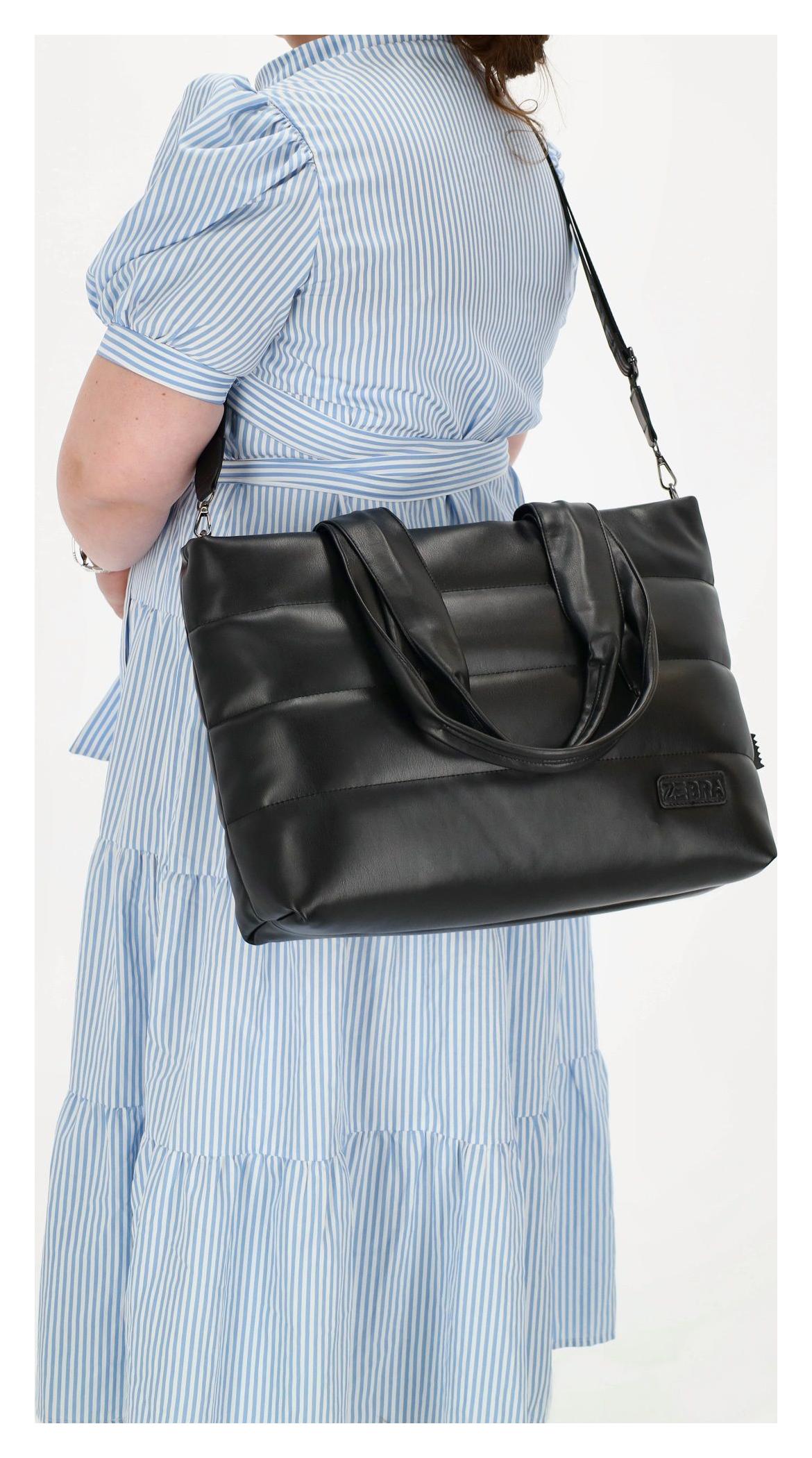 Objavte dokonalú súhru štýlu a praktickosti so shopper taškou Zebra Trends Evie. Táto čierna kráska v trendy prešívanom dizajne sa stane vaším nepostrádateľným spoločníkom, či už mierite do práce, na nákupy alebo len tak do mesta. Ponúka nielen elegantný vzhľad, ale aj šikovne riešený priestor pre všetky vaše denné potreby, vrátane bezpečnej priehradky pre váš notebook.