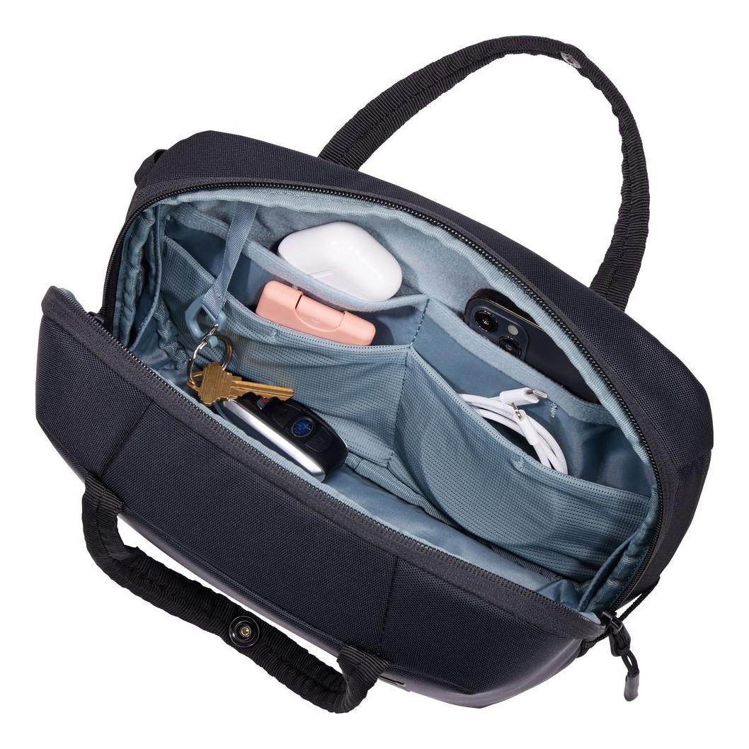 Cestovná crossbody taška Thule Subterra 2 vám zaistí pohodlné a bezpečné cestovanie. V taške nájdete bezpečnostné vrecko na cennosti ako sú napr. cestovné doklady a peňaženka. Toto vrecko poskytne nielen bezpečie, ale i rýchly prístup a možnosť pohotového jednania. Aby sa nikto nepovolaný k vašim cennostiam nedostal, je možné zaistiť jazdce zipsu na hlavnej komore a znemožniť tak jej otvorenie. Hlavná komora disponuje tiež expandérom, ktorý umožní navýšiť objem taštičky o 2 l. Nastaviteľné pútka na spodnej strane tašky slúžia k externému pripevneniu rôznej výbavy – napr. dáždnika alebo bundy. Celú tašku môžete vďaka odnímateľnému ramennému popruhu nosiť jednoducho v ruke, cez jedno rameno alebo crossbody spôsobom.